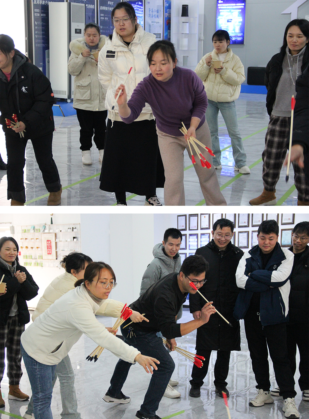 “准确率挑战-投壶游戏”同样精彩纷呈。员工们纷纷化身成为古代的投壶高手,全神贯注地瞄准目标,争取为自己的团队赢得更多的积分。每当有人成功投中时,现场都会爆发出热烈的掌声和欢呼声。